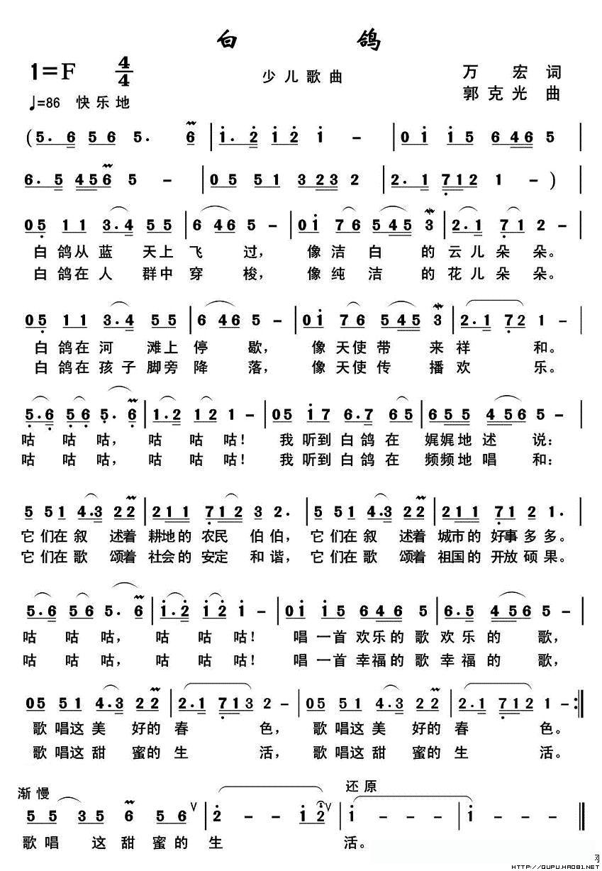 白鸽(万宏词 郭克光曲)的简谱歌词