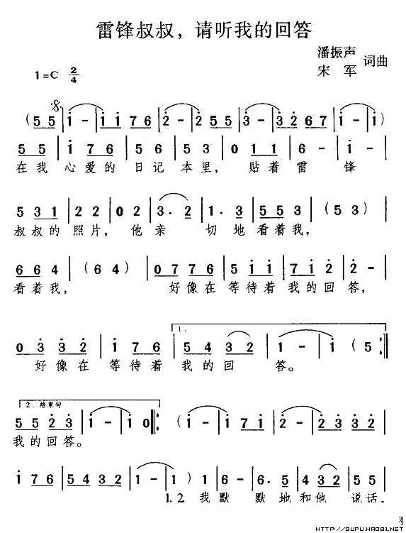 雷锋叔叔,请听我的回答的简谱歌词雷锋叔叔,请听我的回答的简谱歌词