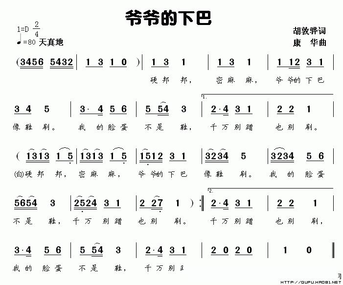 爷爷的下巴(胡敦骅词 康华曲)的简谱歌词