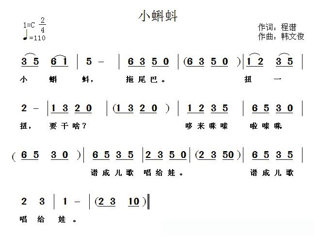 小蝌蚪(程谱词 韩文俊曲)的简谱歌词