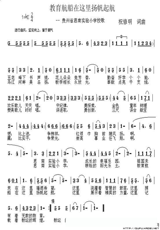 教育航船在这里扬帆起航(思南县实验小学校歌)的简谱歌词