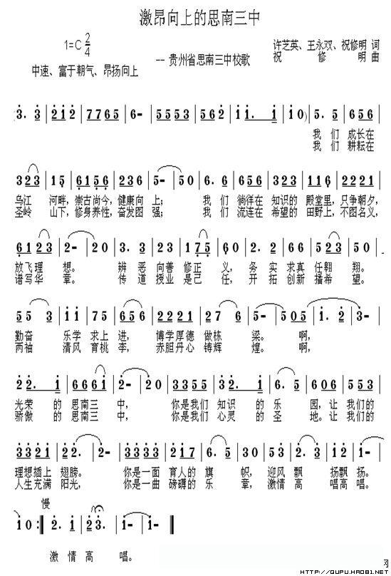 激昂向上的思南三中(思南县三中校歌)的简谱歌词
