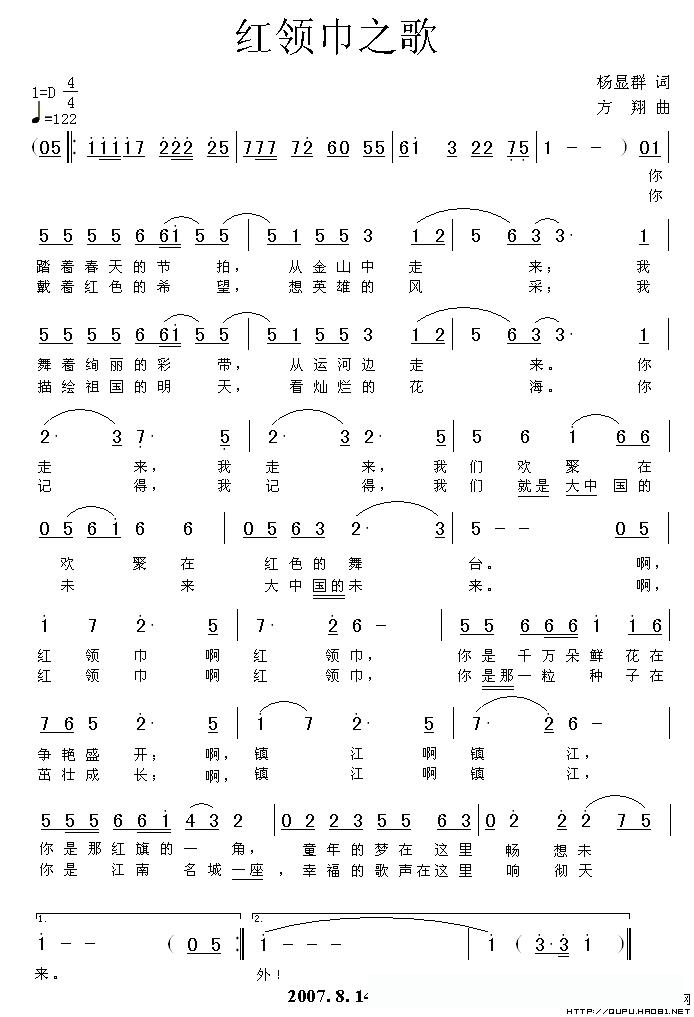 红领巾之歌(杨显群词 方翔曲)的简谱歌词