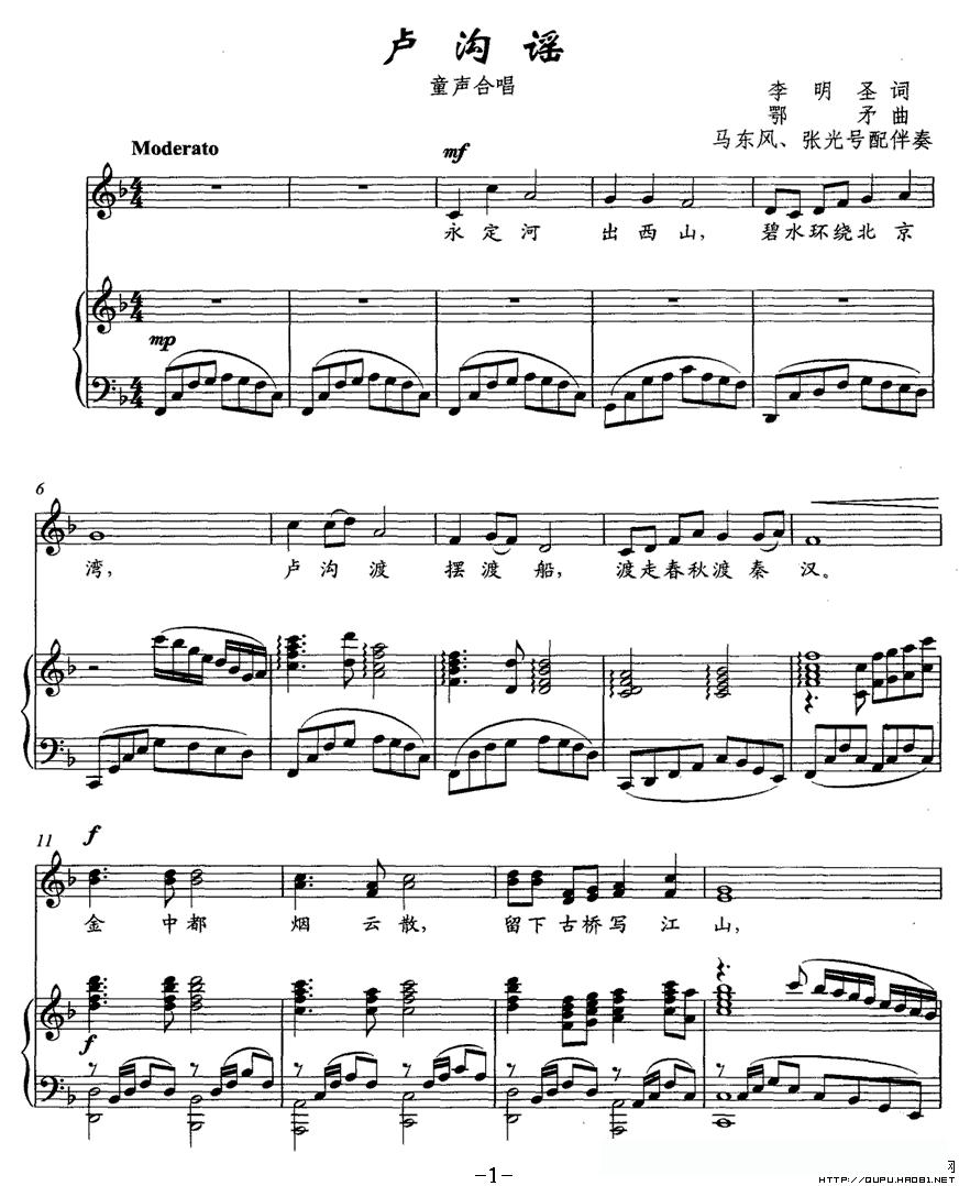 卢沟谣(正谱)的简谱歌词卢沟谣(正谱)的简谱歌词卢沟谣(正谱)的简谱歌词