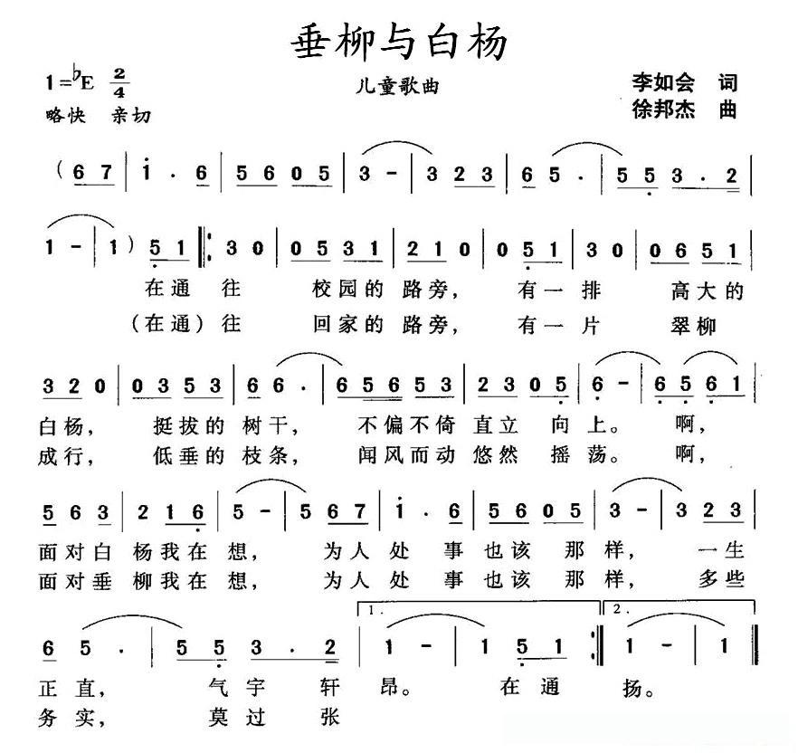 垂柳与白杨的简谱歌词