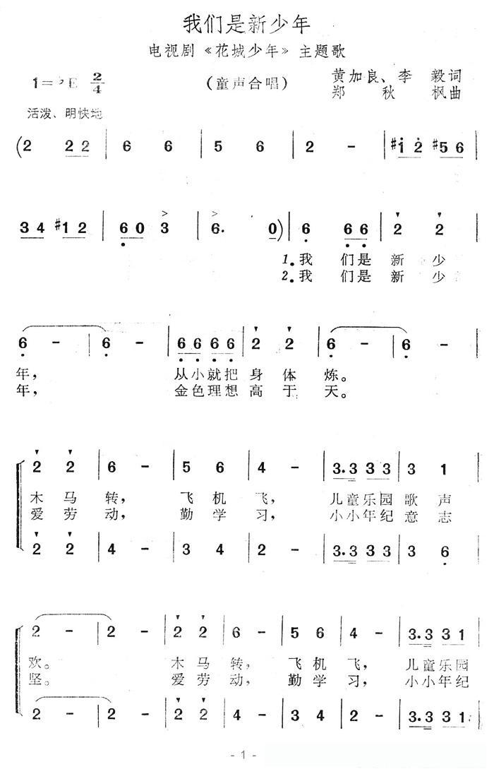 我们是新少年(电视剧《花城少年》主题歌)的简谱歌词我们是新少年(电视剧《花城少年》主题歌)的简谱歌词