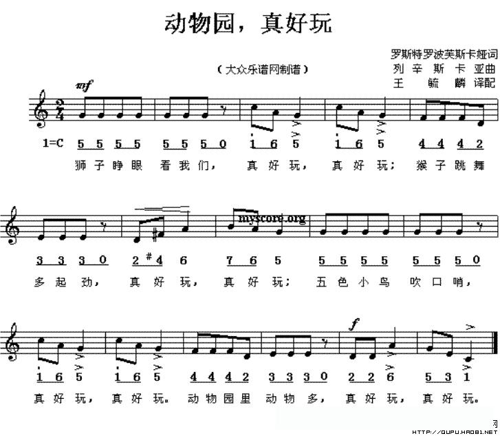 动物园,真好玩(线、的简谱混排版)的简谱歌词