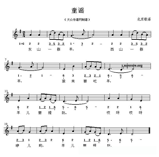 童谣(北京童谣)的简谱歌词