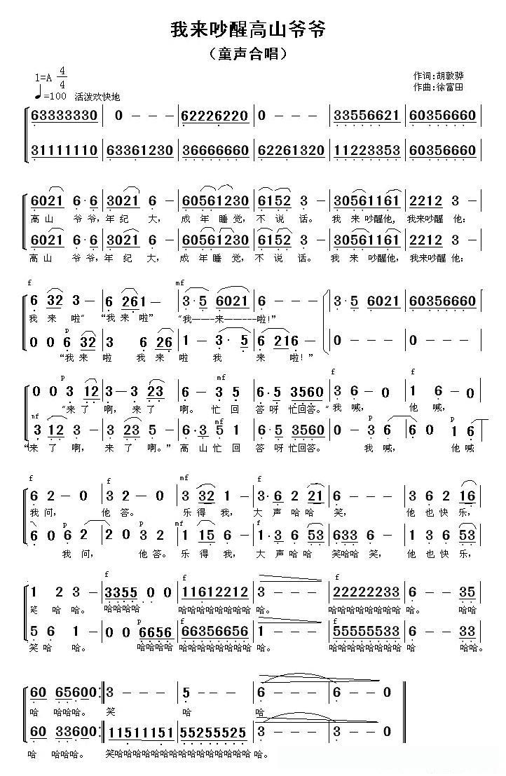 我来吵醒高山爷爷(合唱)的简谱歌词