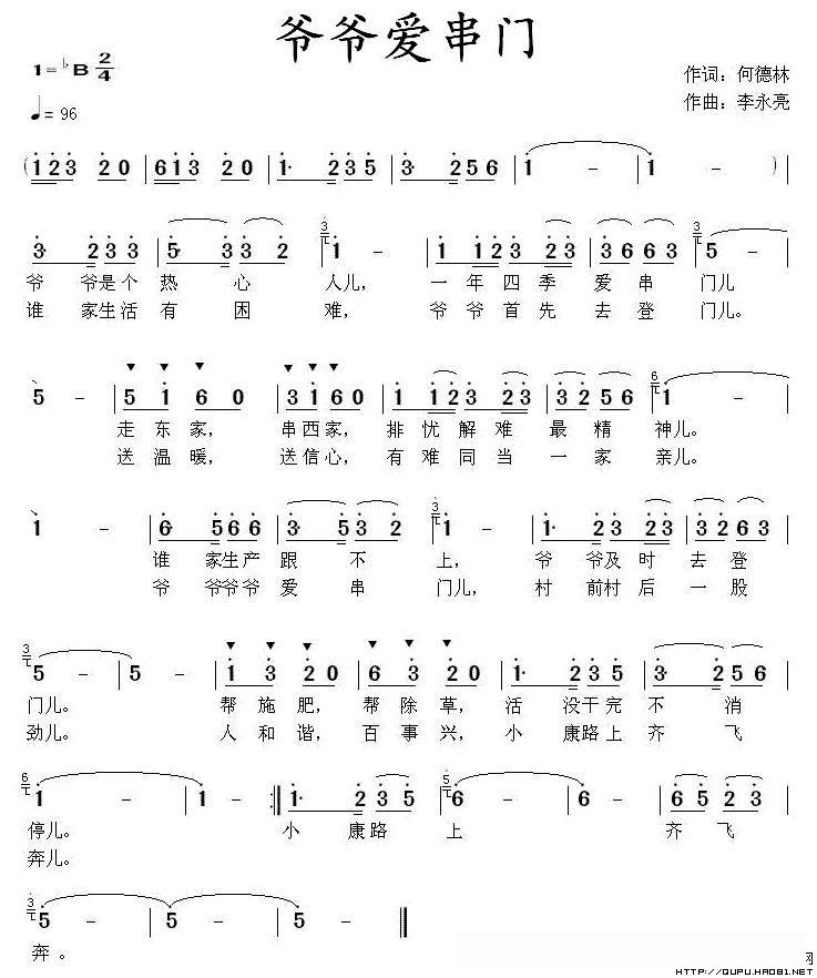 爷爷爱串门的简谱歌词