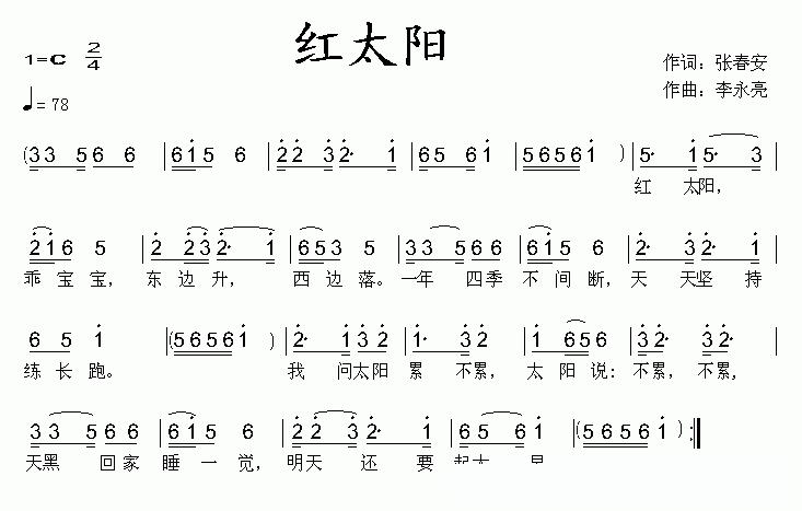 红太阳(张春安词 李永亮曲)的简谱歌词