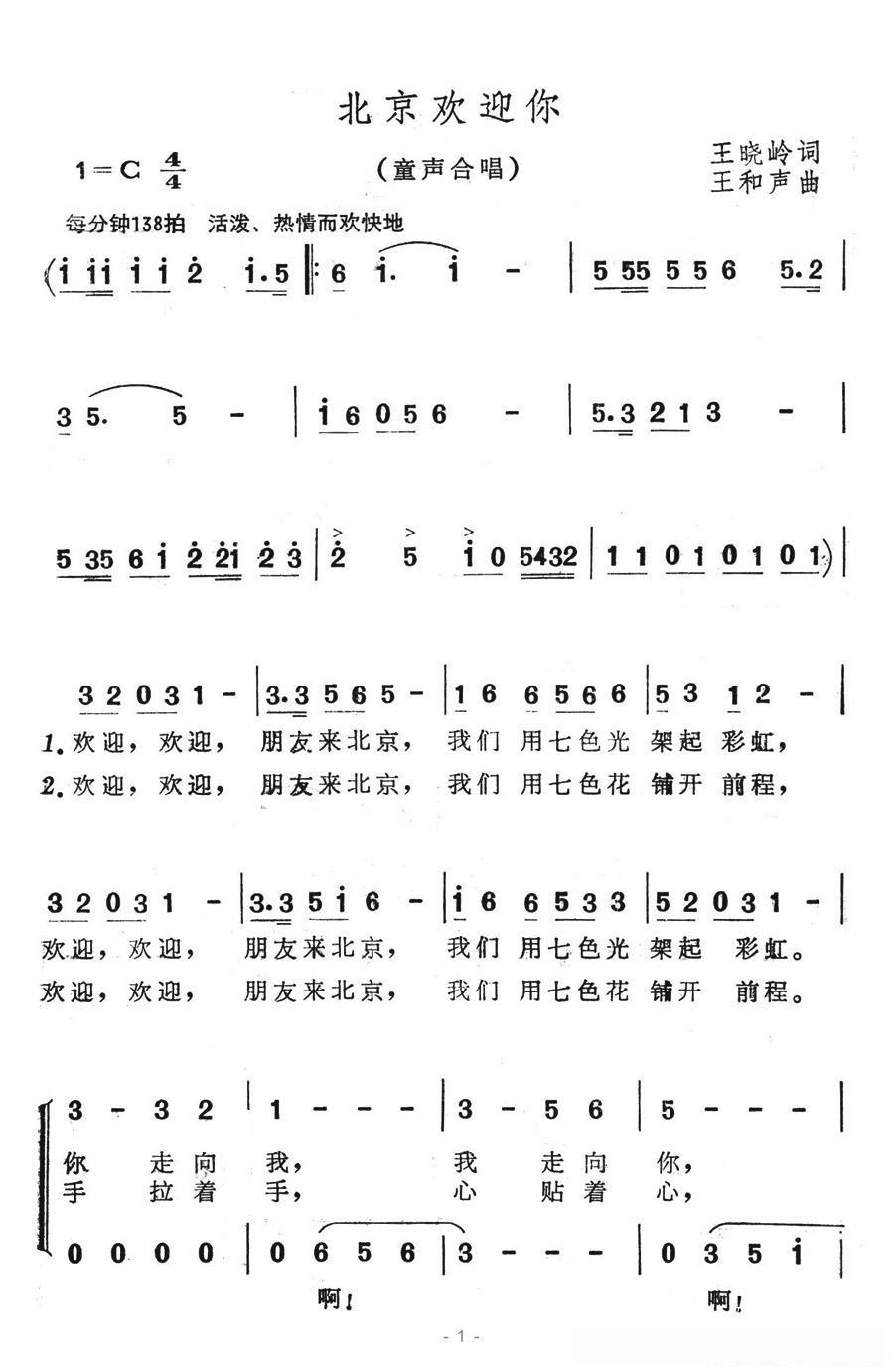 北京欢迎你(王晓岭词 王和声曲、合唱)的简谱歌词北京欢迎你(王晓岭词 王和声曲、合唱)的简谱歌词北京欢迎你(王晓岭词 王和声曲、合唱)的简谱歌词