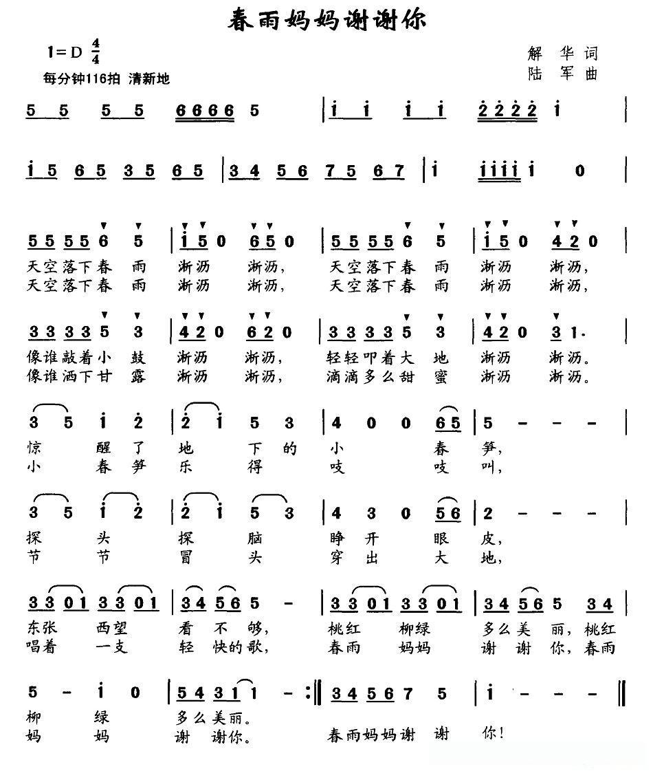 春雨妈妈谢谢你的简谱歌词春雨妈妈谢谢你的简谱歌词春雨妈妈谢谢你的简谱歌词