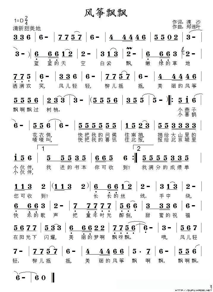风筝飘飘(漠沙词 郑连叶曲)的简谱歌词