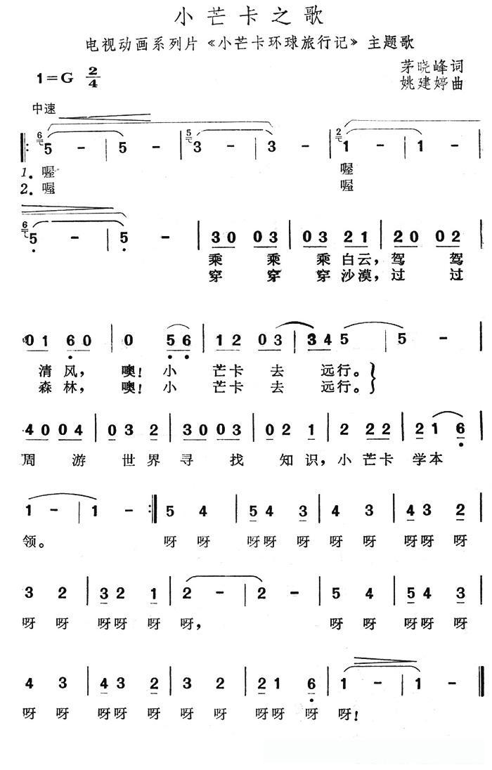 小芒卡之歌(动画片《小芒卡环球旅游记》主题歌)的简谱歌词