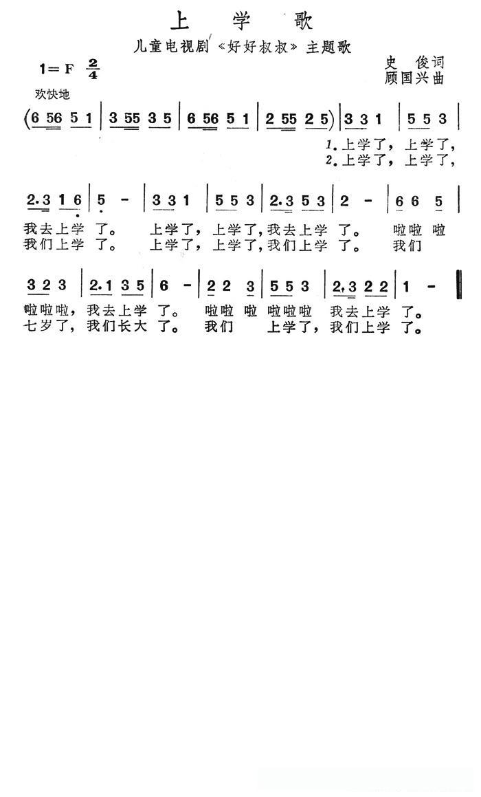 上学歌(儿童电视剧《好好叔叔》主题歌)的简谱歌词