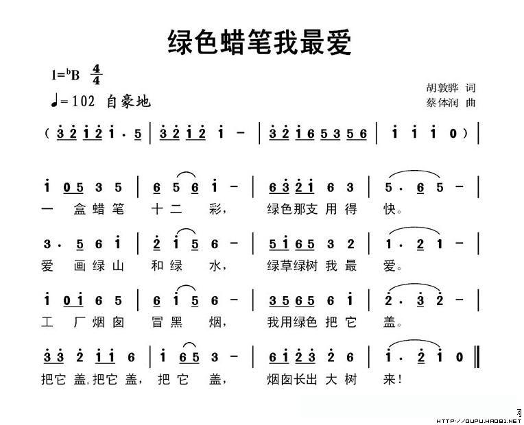 绿色蜡笔我最爱(胡敦骅词 蔡体润曲)的简谱歌词