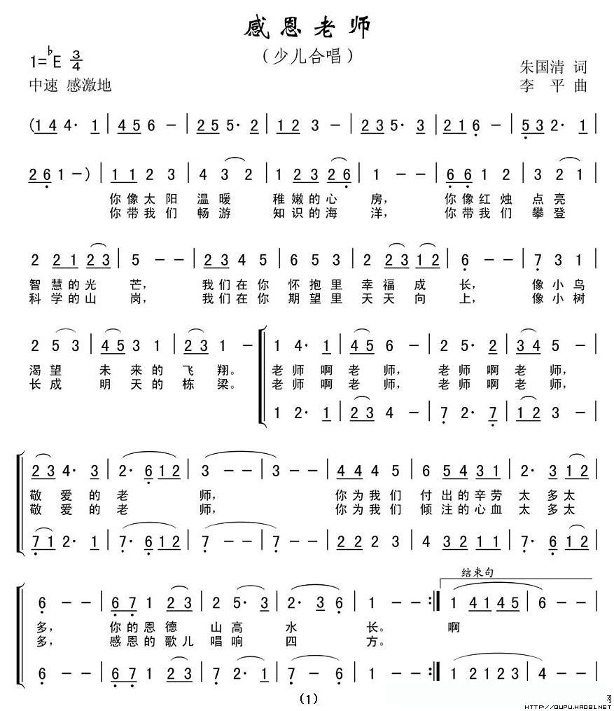 感恩老师(朱国清词 李平曲、合唱)的简谱歌词感恩老师(朱国清词 李平曲、合唱)的简谱歌词