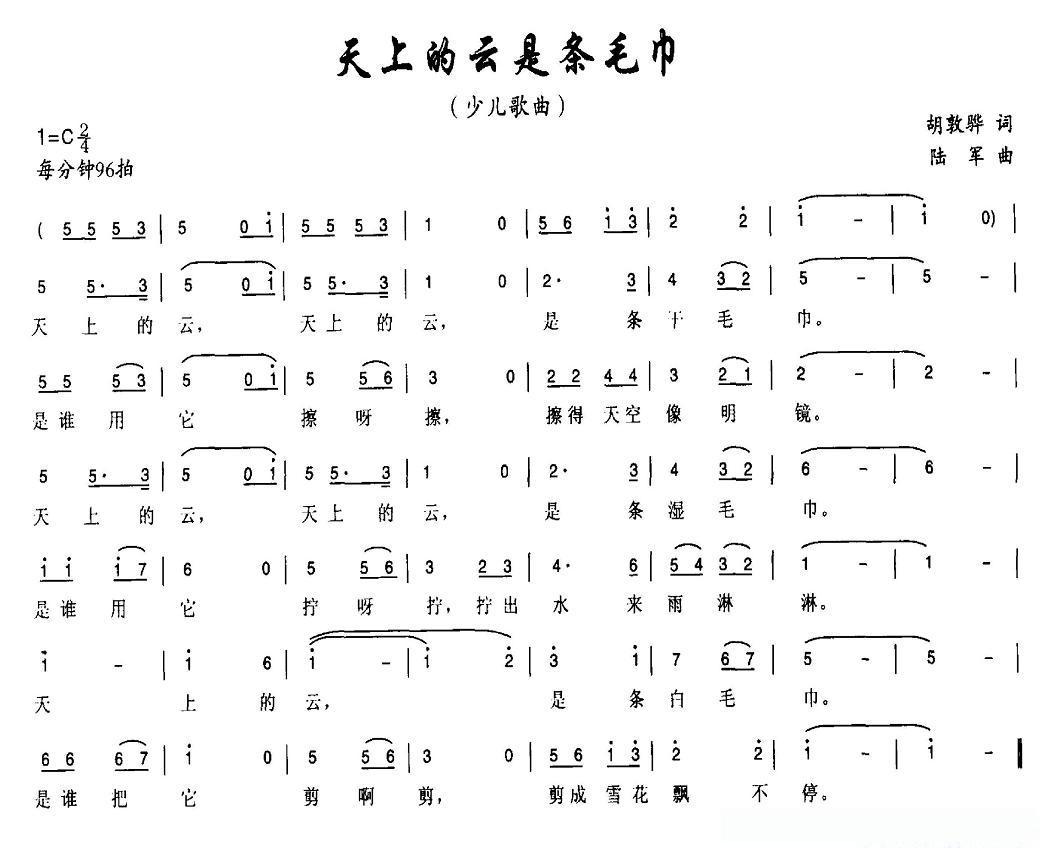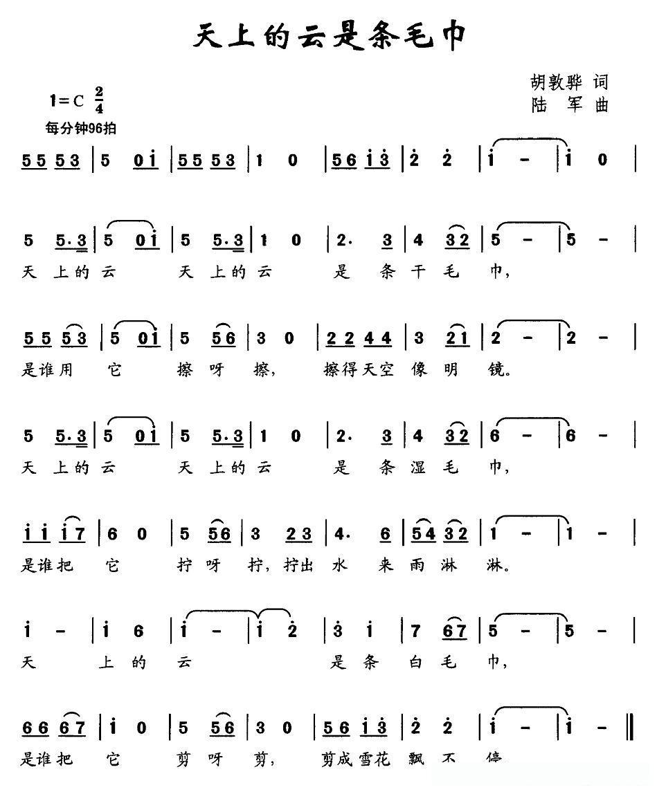 天上的云是条毛巾的简谱歌词天上的云是条毛巾的简谱歌词