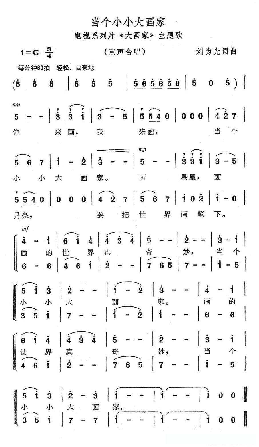 当个小小大画家(电视系列片《大画家》主题歌)的简谱歌词