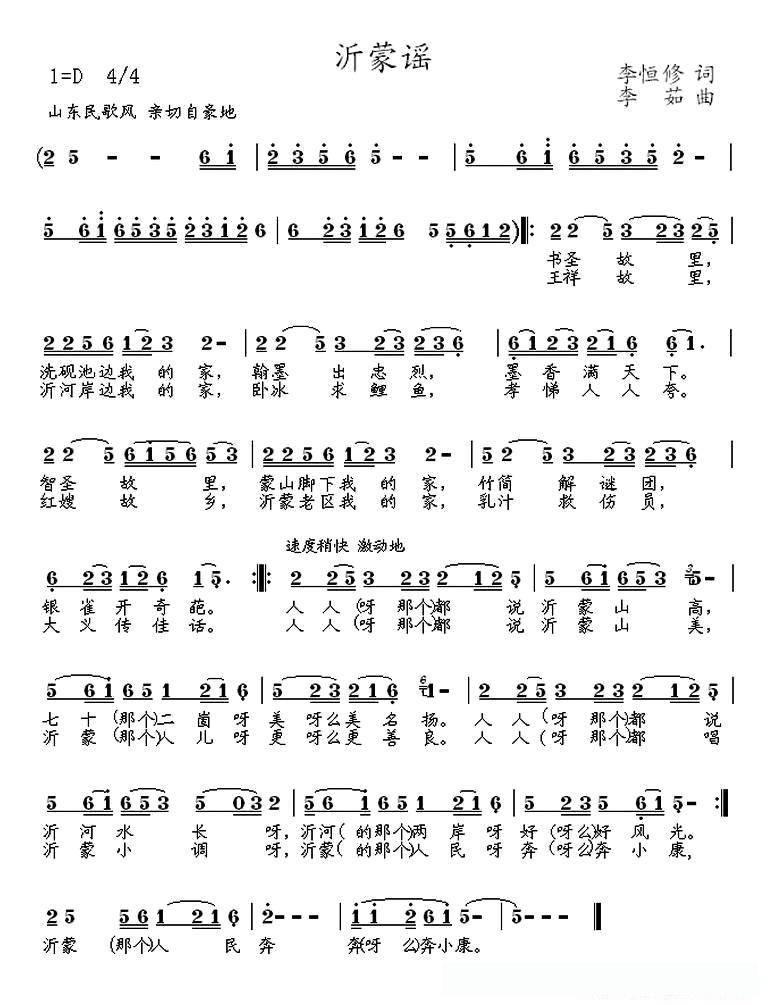 沂蒙谣(李恒修词 李茹曲)的简谱歌词