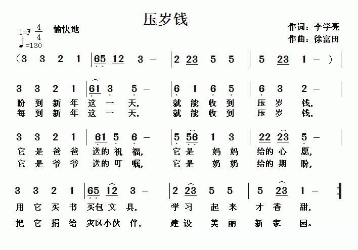 压岁钱(李学亮词 徐富田曲)的简谱歌词