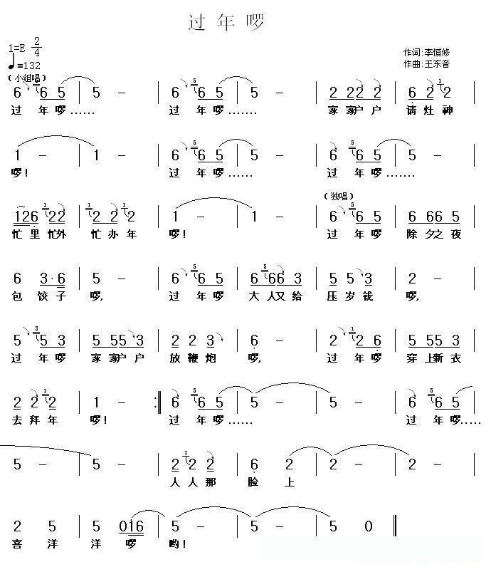 过年啰(李恒修词 王东音曲)的简谱歌词
