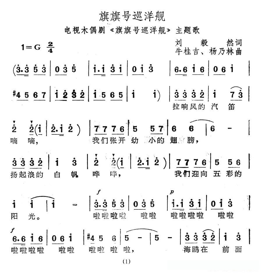 旗旗号巡洋舰(电视木偶剧《旗旗号巡洋舰》主题歌)的简谱歌词旗旗号巡洋舰(电视木偶剧《旗旗号巡洋舰》主题歌)的简谱歌词