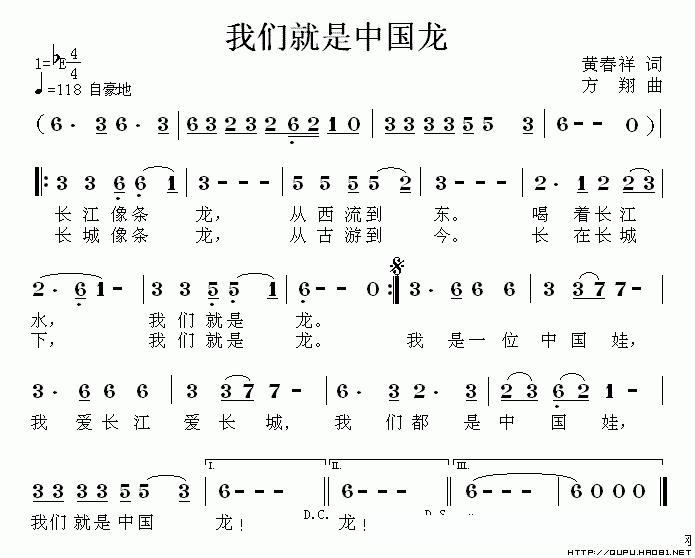我们就是中国龙的简谱歌词