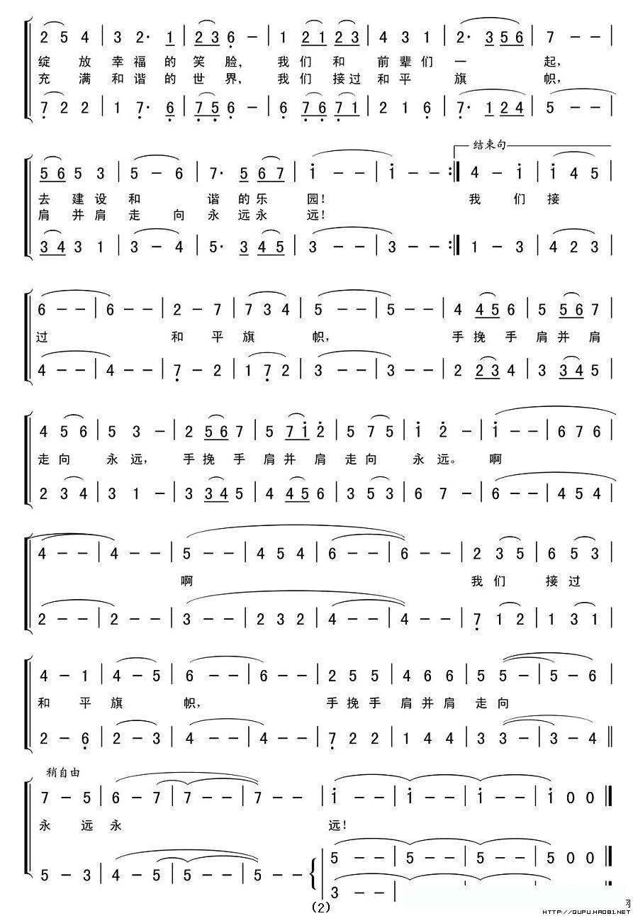 和平宣言(合唱)的简谱歌词
