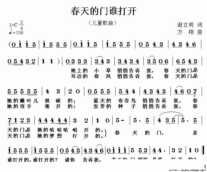 春天的门谁打开的简谱歌词