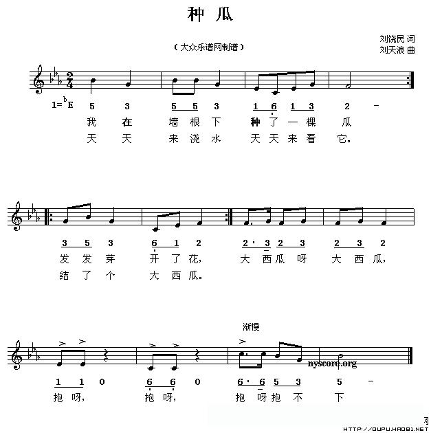 种瓜(刘饶民词 刘天浪曲、线的简谱混排版)的简谱歌词