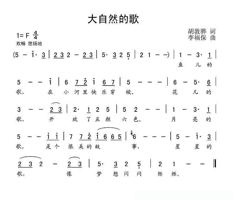 大自然的歌的简谱歌词