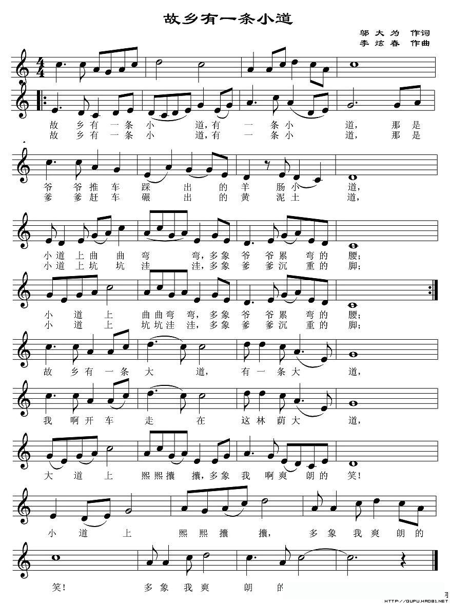 故乡有一条小道(五线谱)的简谱歌词