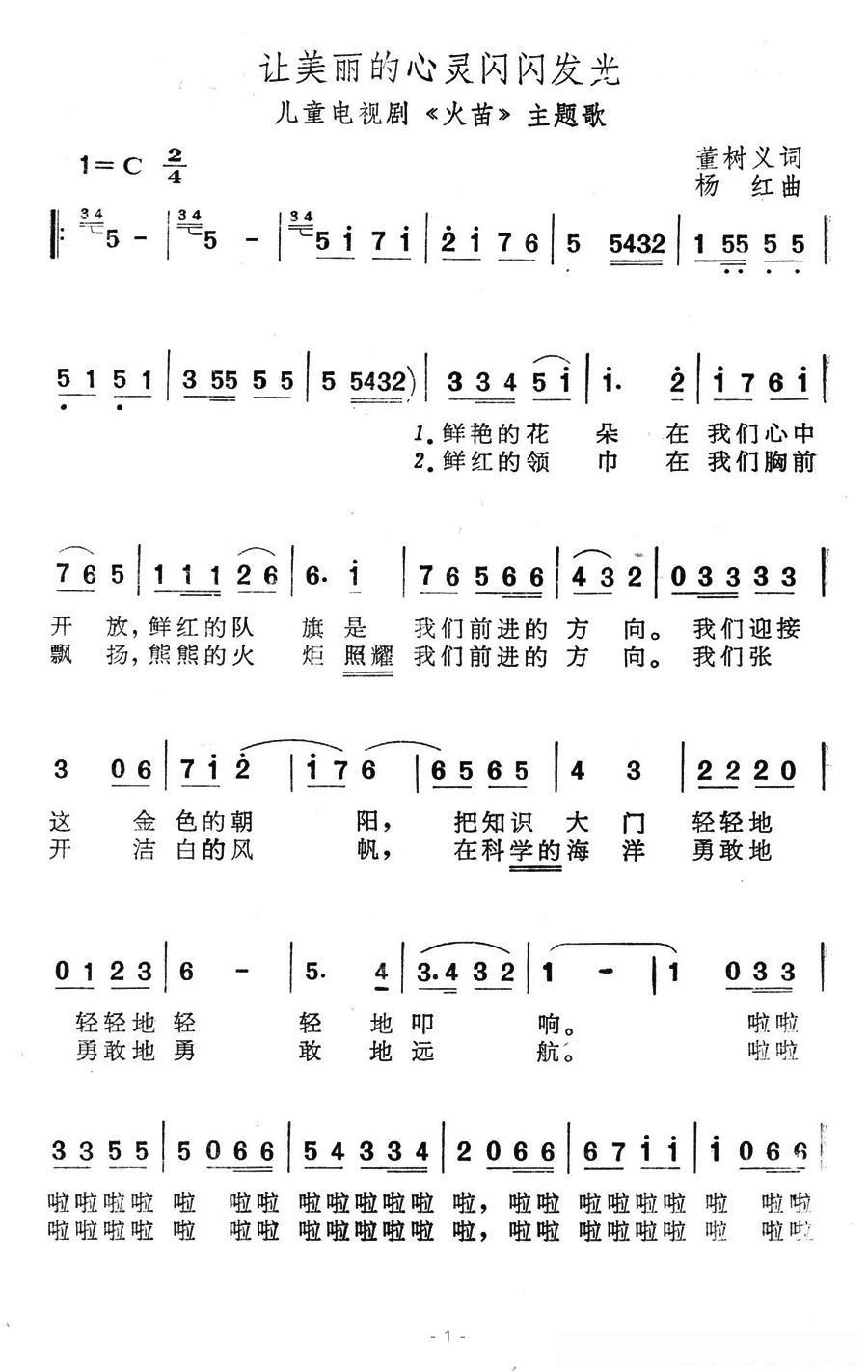 让美丽的心灵闪闪发光(儿童电视剧《火苗》主题歌)的简谱歌词让美丽的心灵闪闪发光(儿童电视剧《火苗》主题歌)的简谱歌词