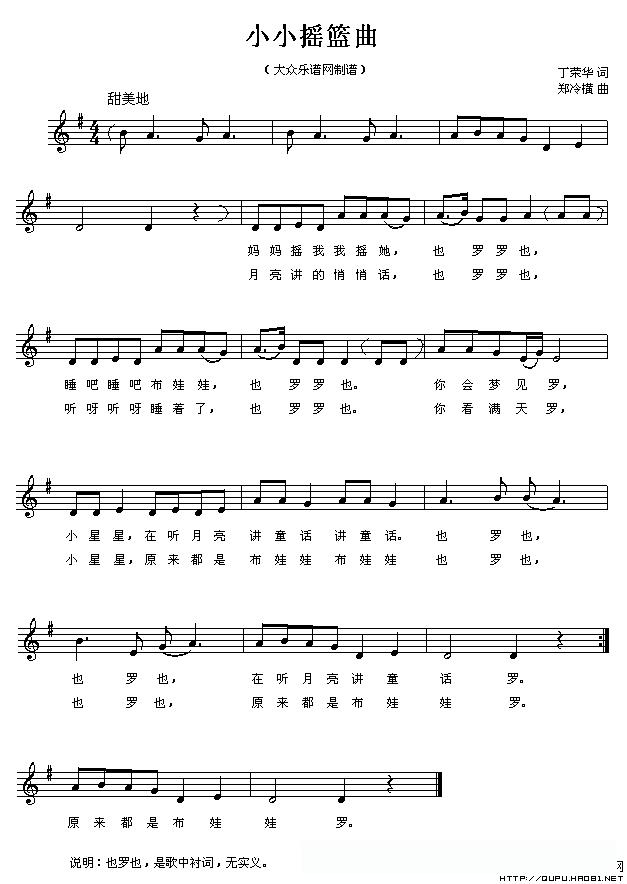 小小摇篮曲(的简谱+五线谱)的简谱歌词小小摇篮曲(的简谱+五线谱)的简谱歌词