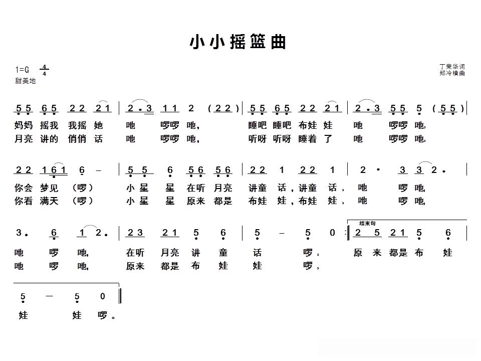 小小摇篮曲(的简谱+五线谱)的简谱歌词