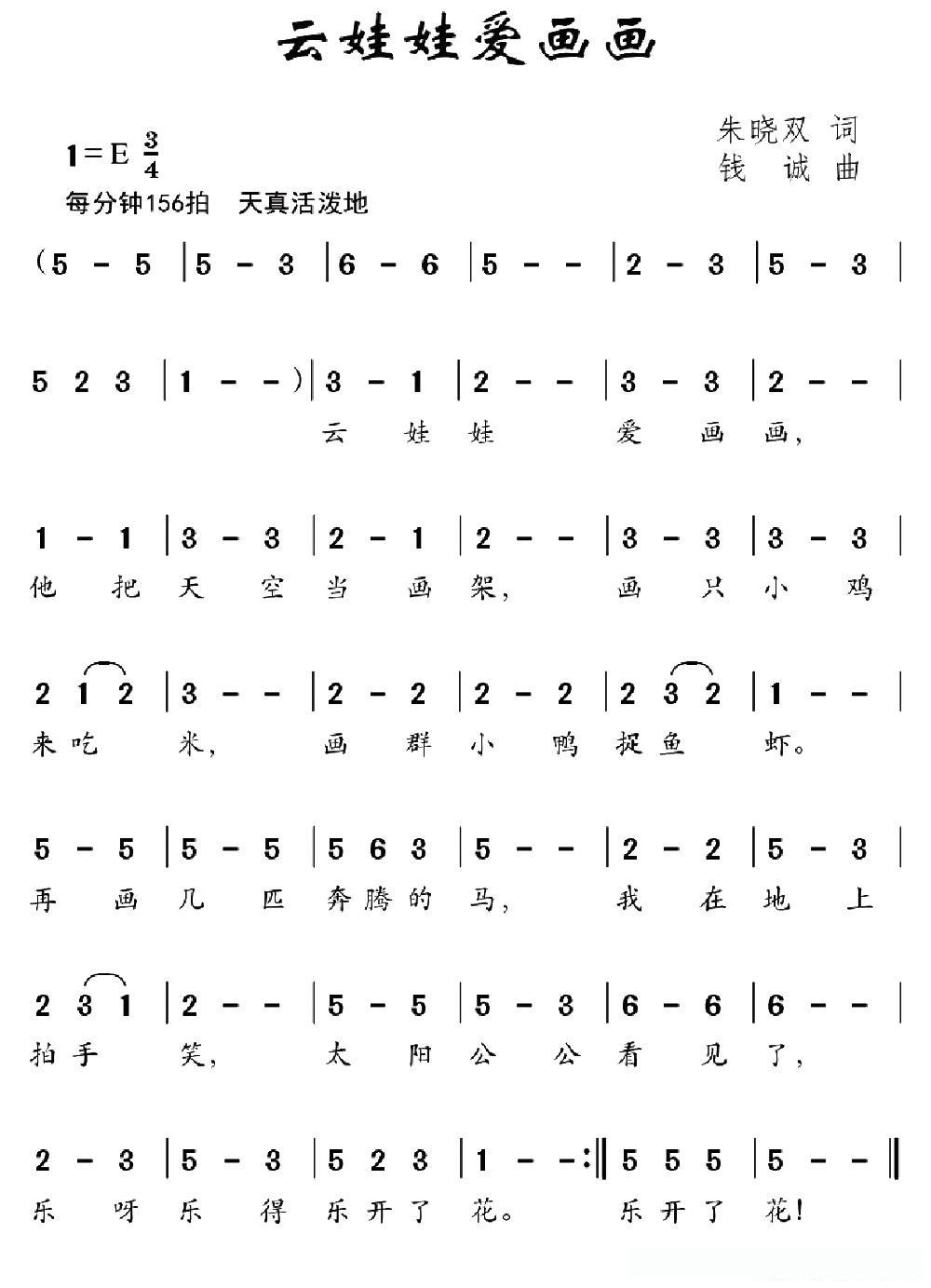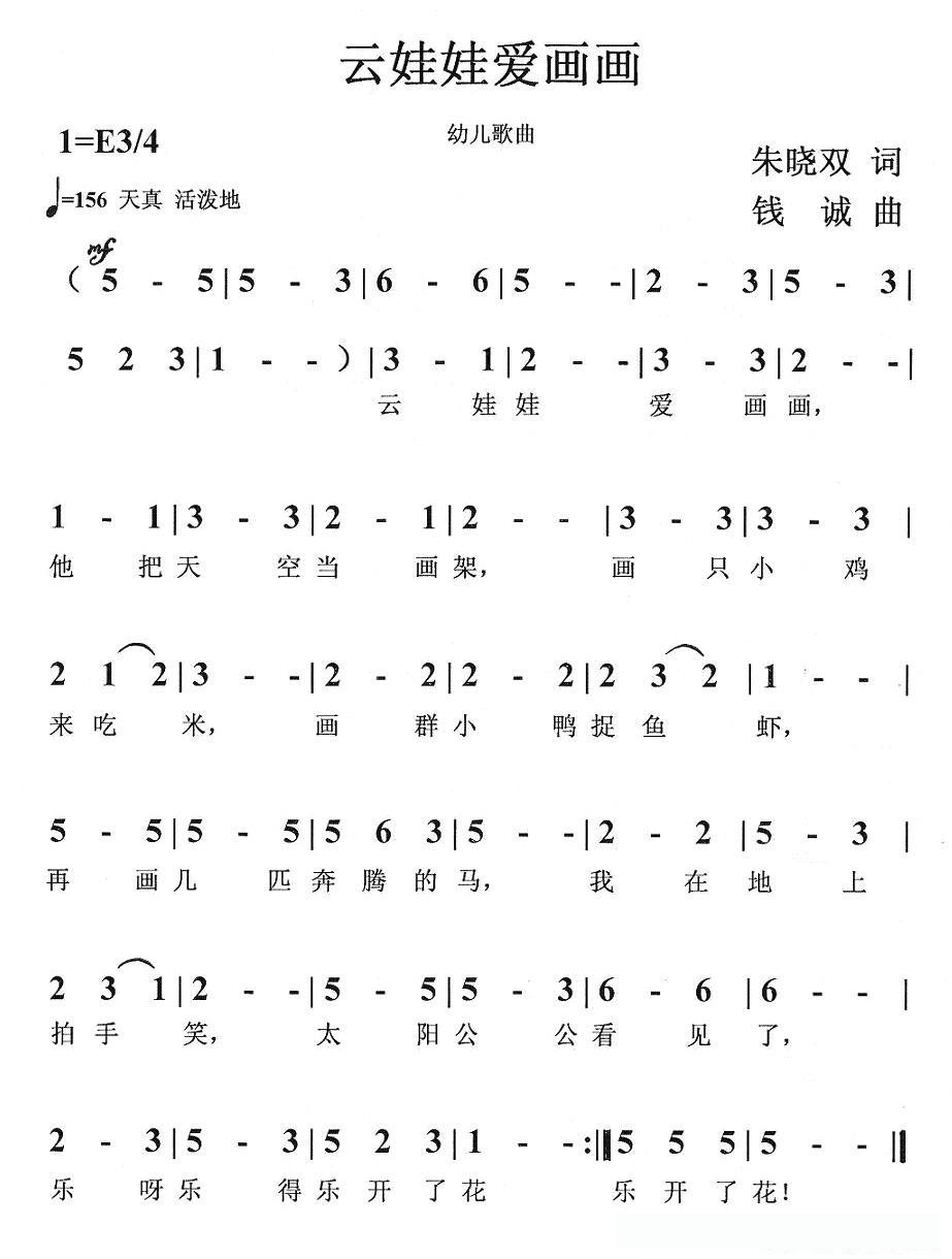 云娃娃爱画画的简谱歌词云娃娃爱画画的简谱歌词