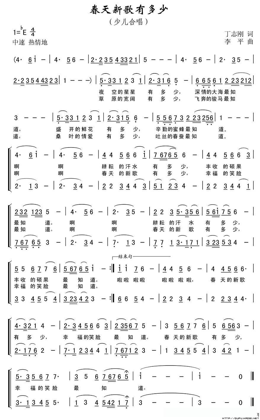 春天新歌有多少(丁志刚词 李平曲、合唱)的简谱歌词