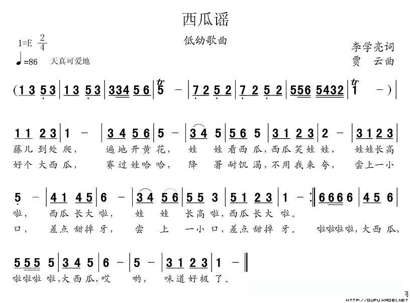 西瓜谣的简谱歌词西瓜谣的简谱歌词