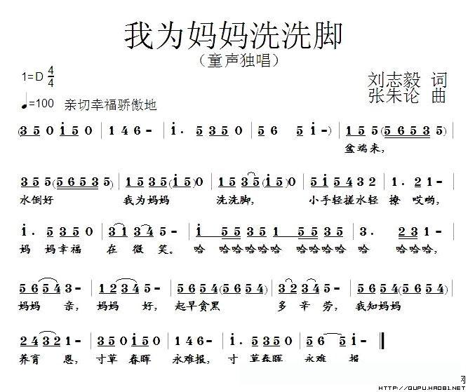 我为妈妈洗洗脚(刘志毅词 张朱论曲)的简谱歌词