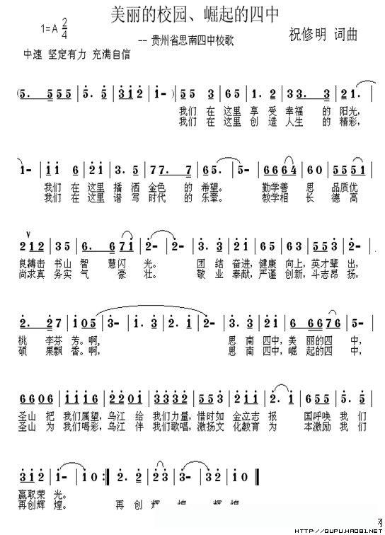 美丽的校园、崛起的四中(思南县四中校歌)的简谱歌词