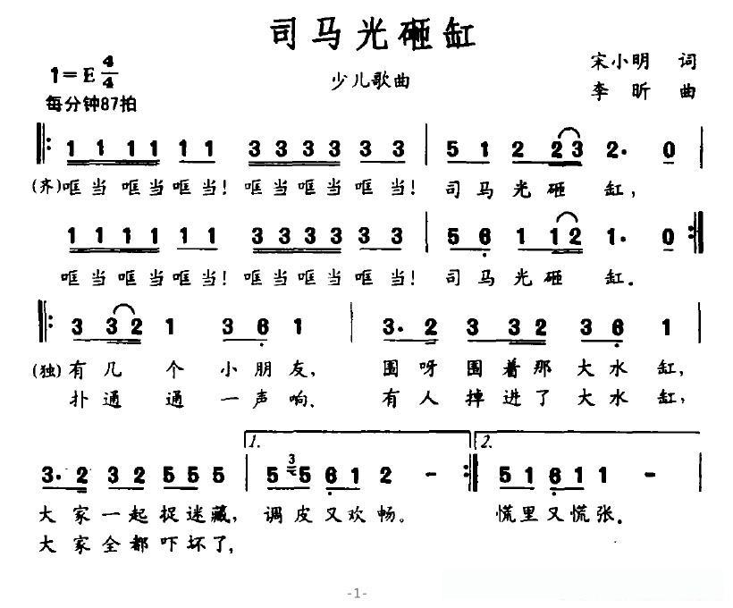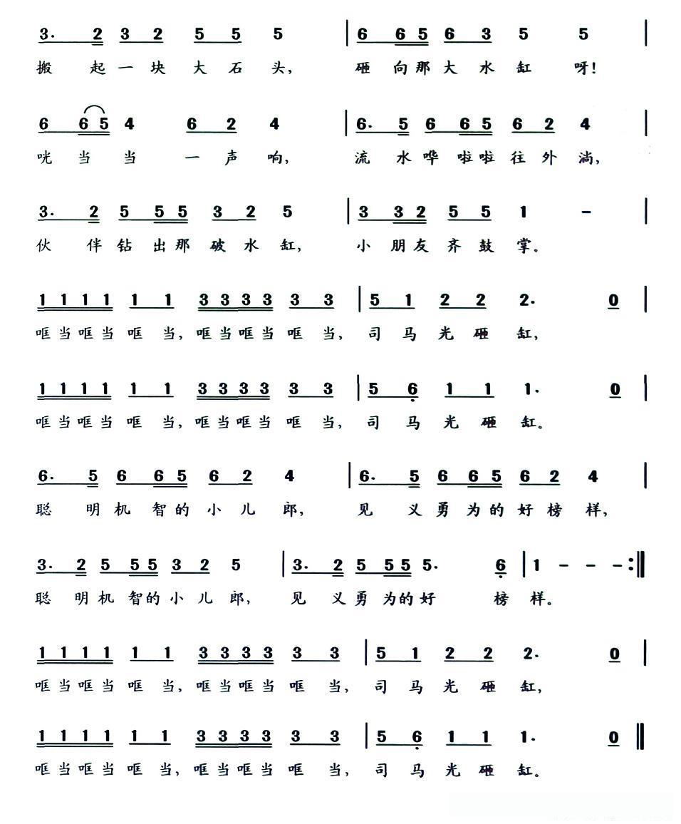 有一个小朋友名字叫作那司马光, 搬起一块大石头,砸向那大水缸呀!