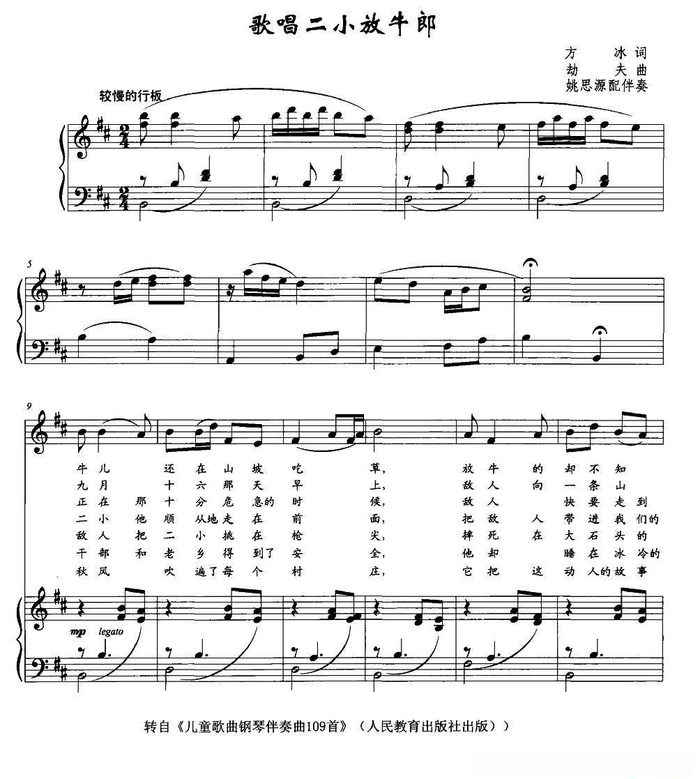 歌唱二小放牛郎(正谱)的简谱歌词歌唱二小放牛郎(正谱)的简谱歌词