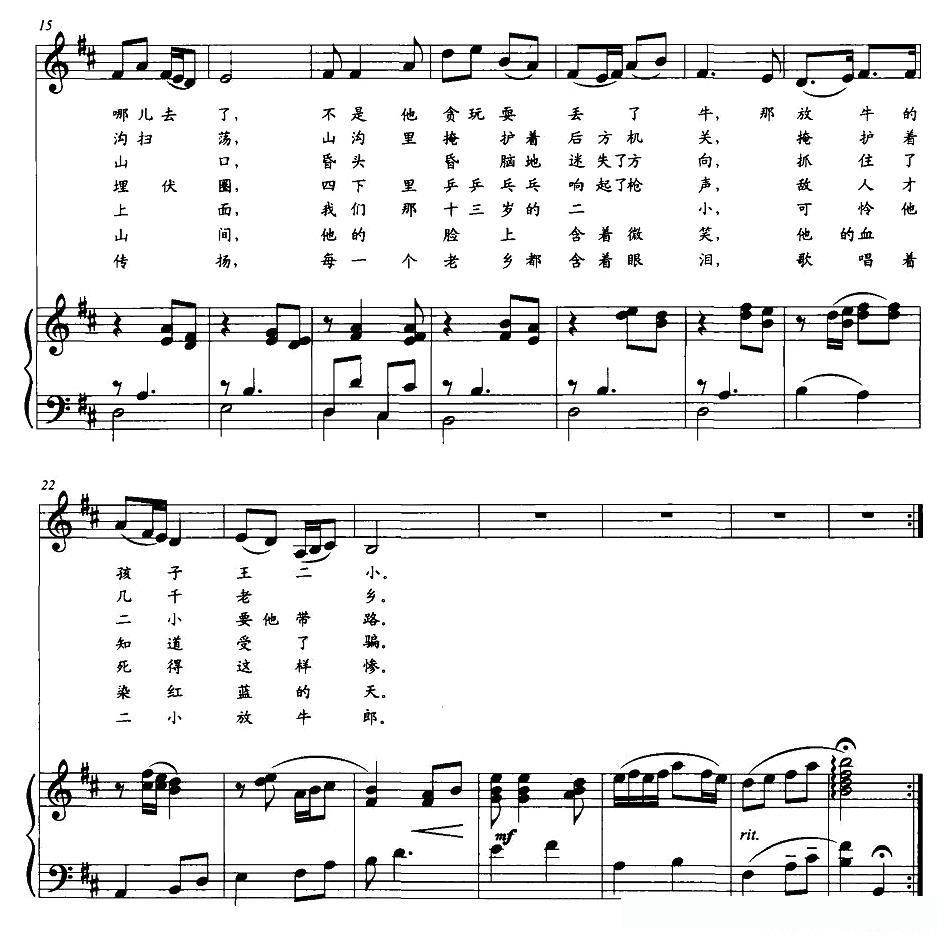 歌唱二小放牛郎(正谱)的简谱歌词