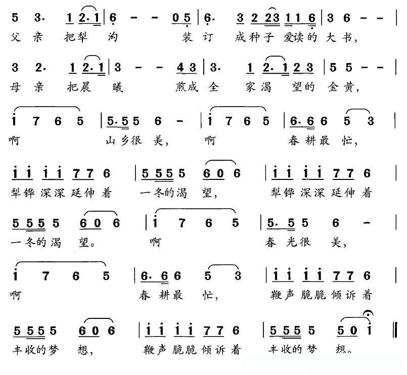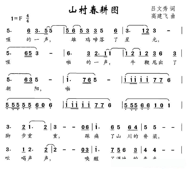 山村春耕图的简谱歌词山村春耕图的简谱歌词