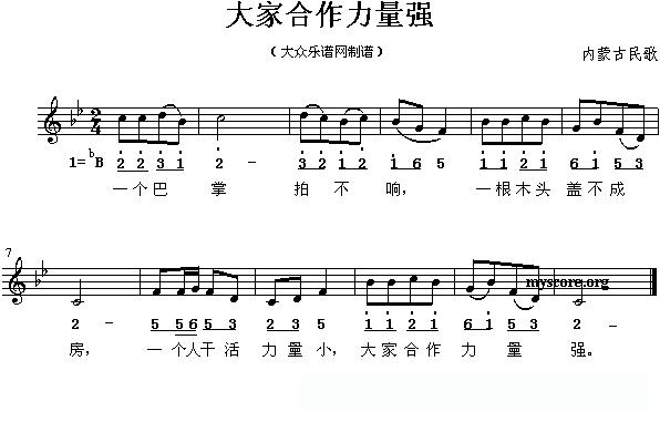 大家合作力量强(线的简谱混排版)的简谱歌词