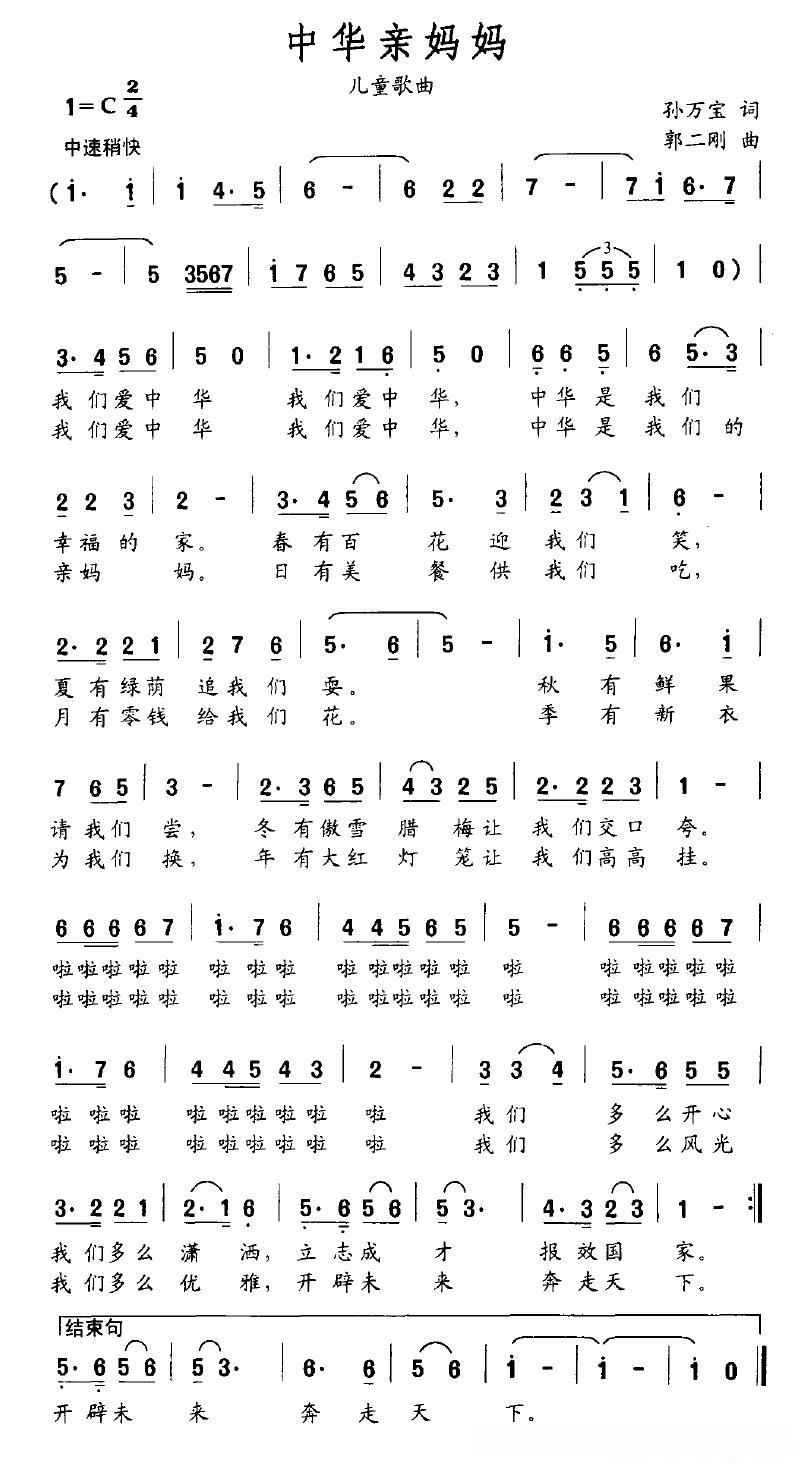 中华亲妈妈的简谱歌词