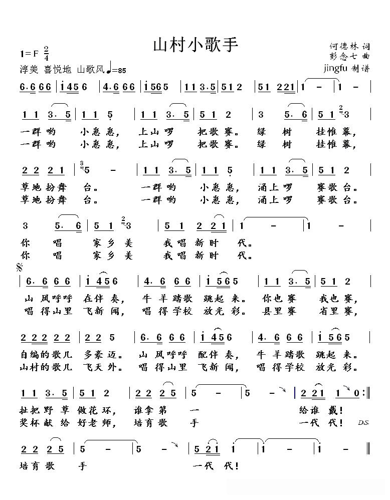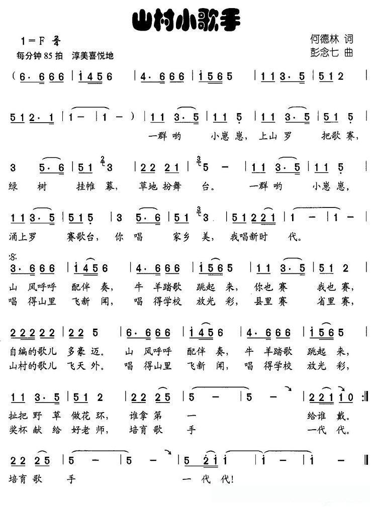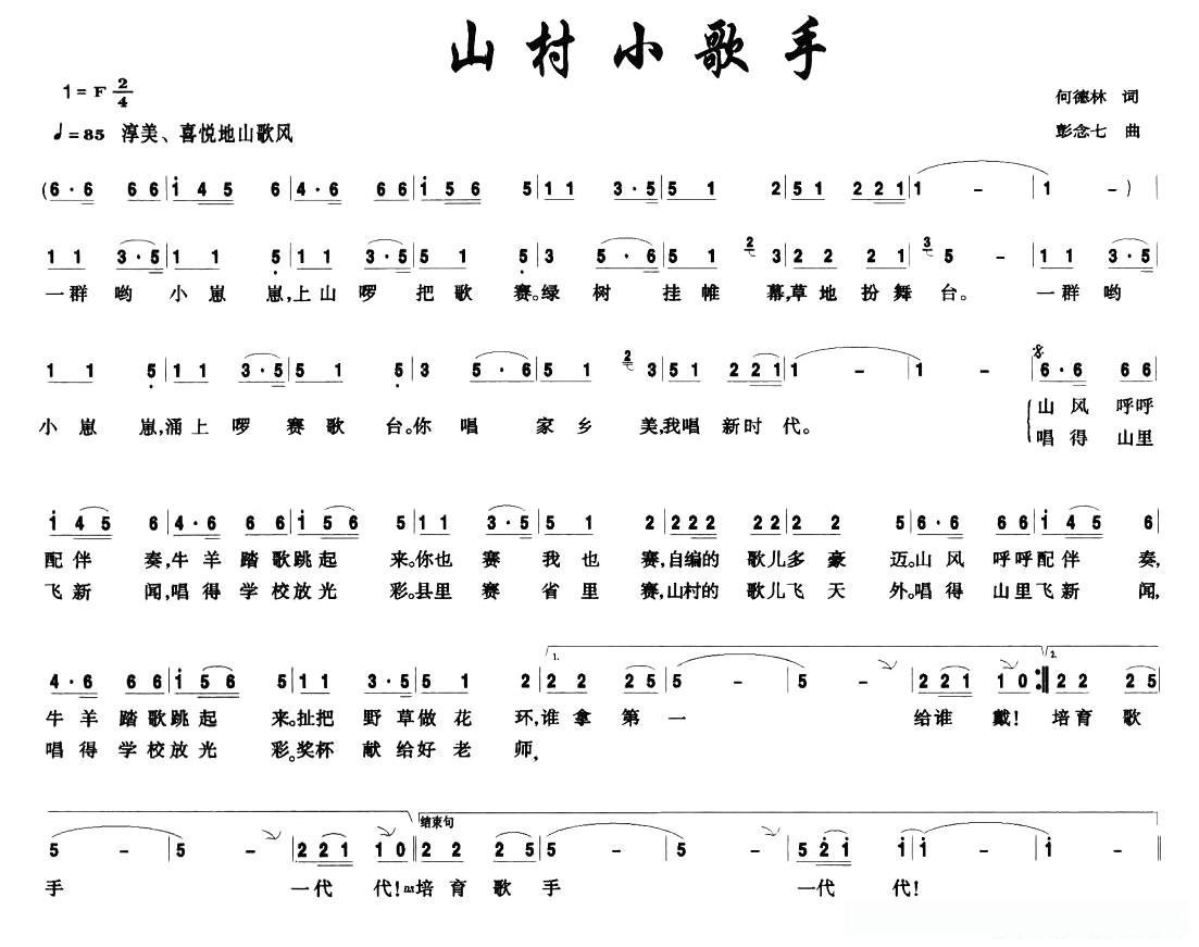 山村小歌手的简谱歌词山村小歌手的简谱歌词山村小歌手的简谱歌词