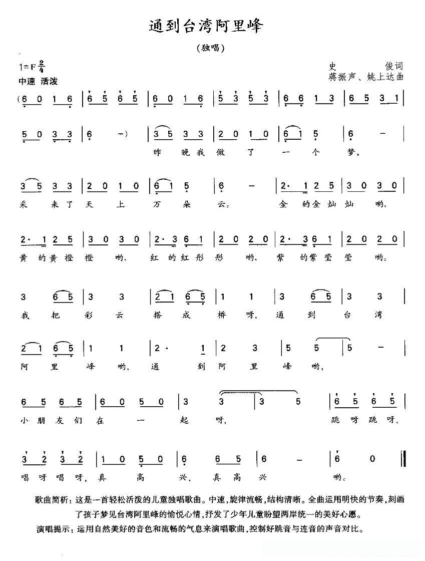 通到台湾阿里峰的简谱歌词